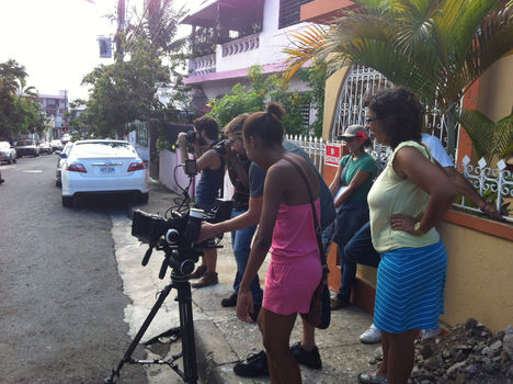 For the third stage of the project, we showed them the short film Las playas son nuestras (1989) by Puerto Rican dancer and choreographer Viveca Vázquez as a reference of an experimental video piece that deals with environmental issues. Vieques is one of the islands of the Puerto Rican archipelago that was occupied by the U.S. Navy from 1941 to 2003 causing health issues and environmental destructions. The students, instead of reading the video in terms of the US military occupation of the island they interpreted the video as the travails of their Dominican families emigrating to Puerto Rico risking their lives in a dangerous travel by water. The students decided to remade Las playas son nuestras from their perspectives of second and third generation Dominicans that were born in Puerto Rico. With all these interviews, and videos collected the participants produced an experimental documentary film that links the health and environmental problems with issues about social marginalization and economic inequality.